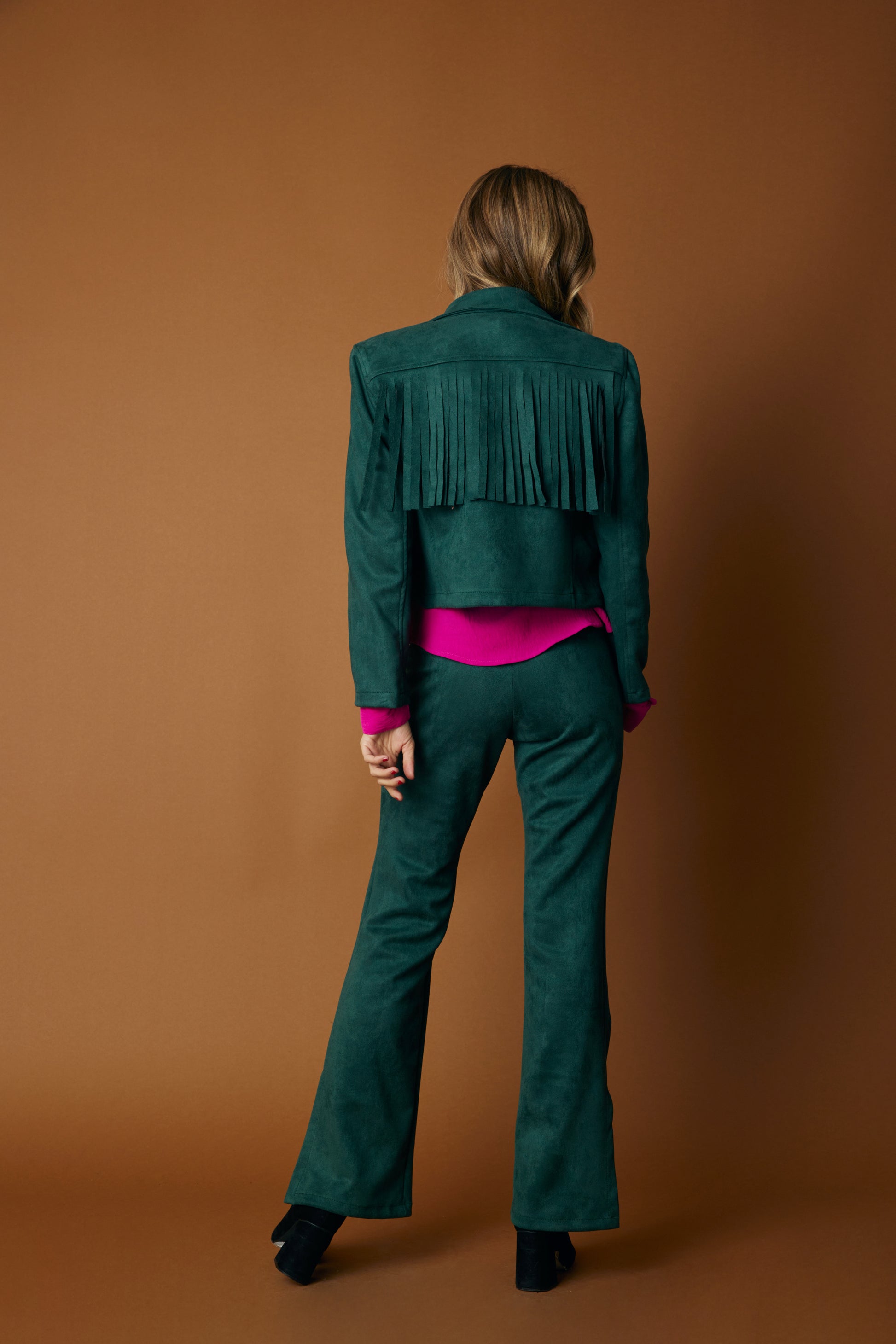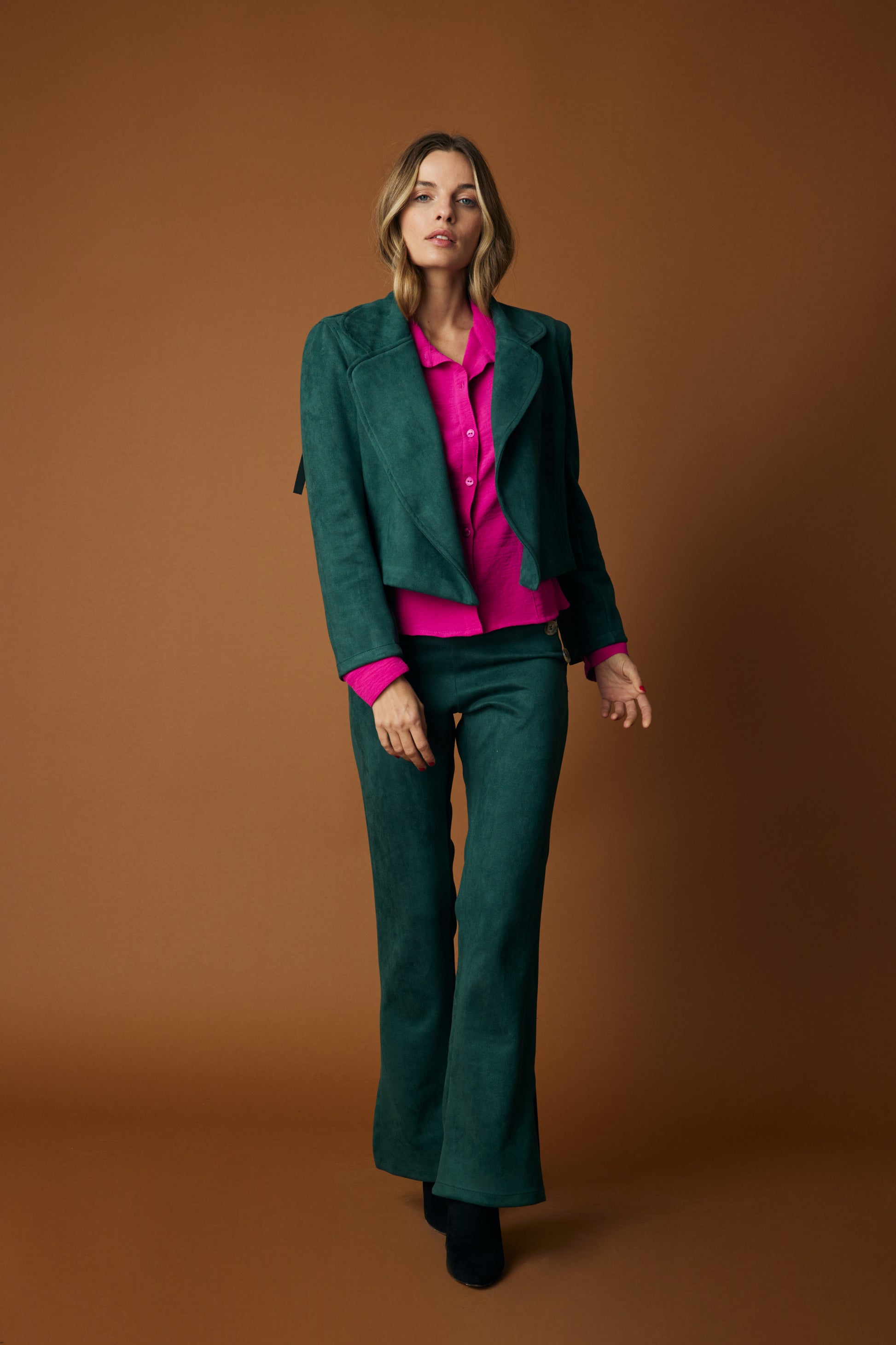La calza Napoles en eco gamuza su comoda pretina que contiene hace un muy buen calce y botones decorativos y su abertura en ruedo le dan un toque especial.