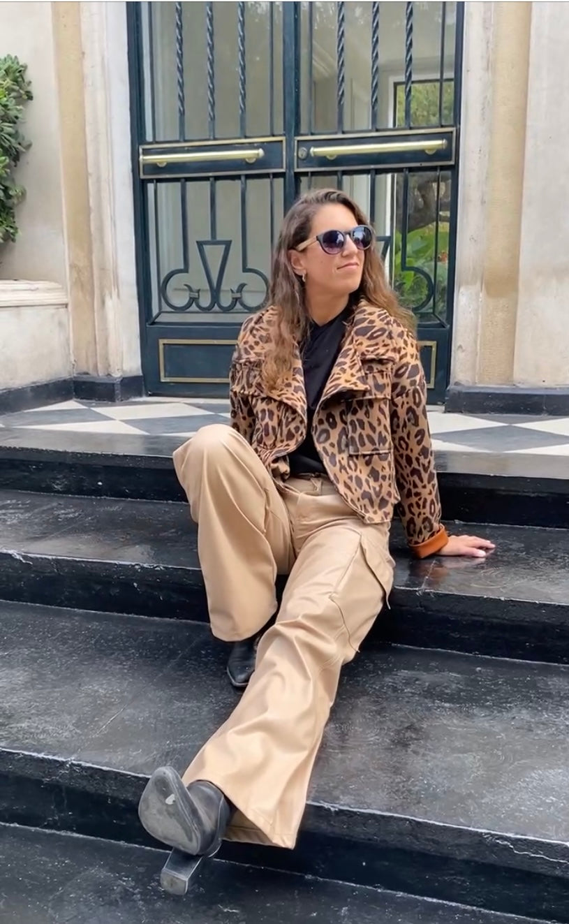 La chaqueta Lisboa talla única de eco gamuza estampada tipo cargo es muy versátil para todas ocasiones.