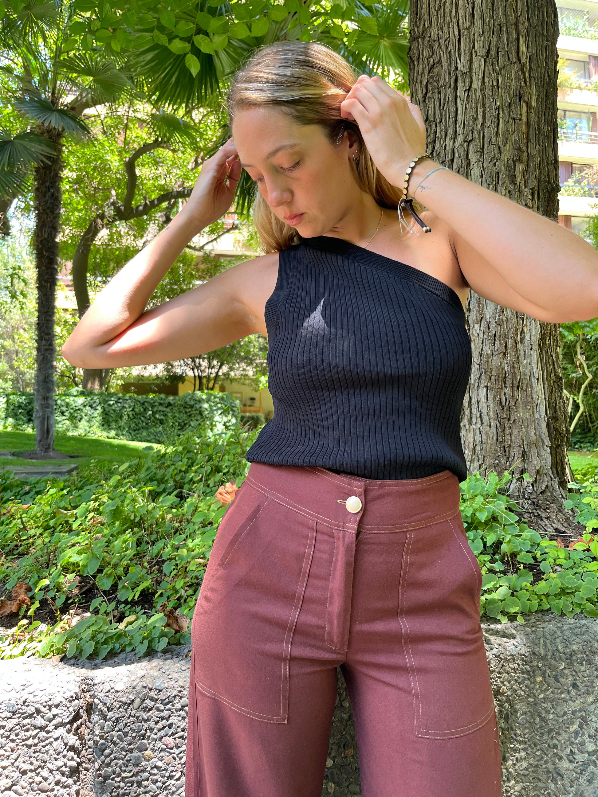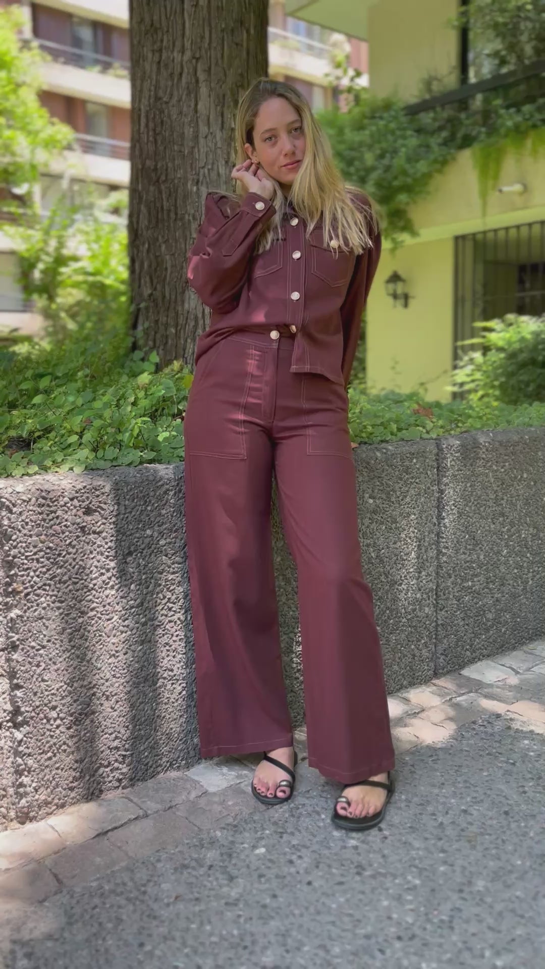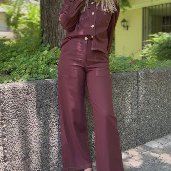 El Pantalón Lazio es un pantalón en Lino Viscosa con bolsillos de parche y tapetas tipo cargo , de pierna ancha palazo con un calce tiro alto pretina , calce espectacular cuidadosamente desarrollado accesorios bronce dorado que le da un look moderno