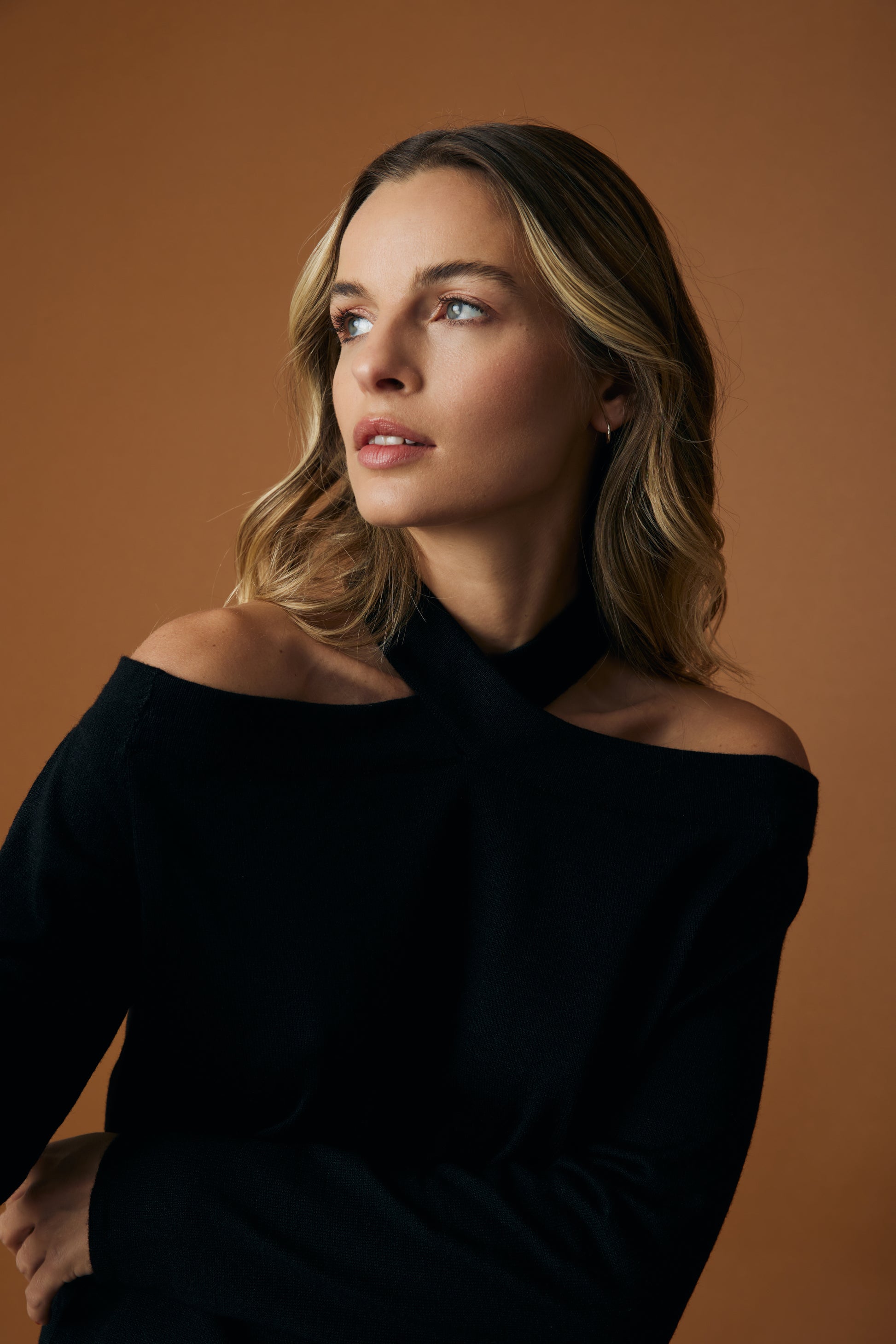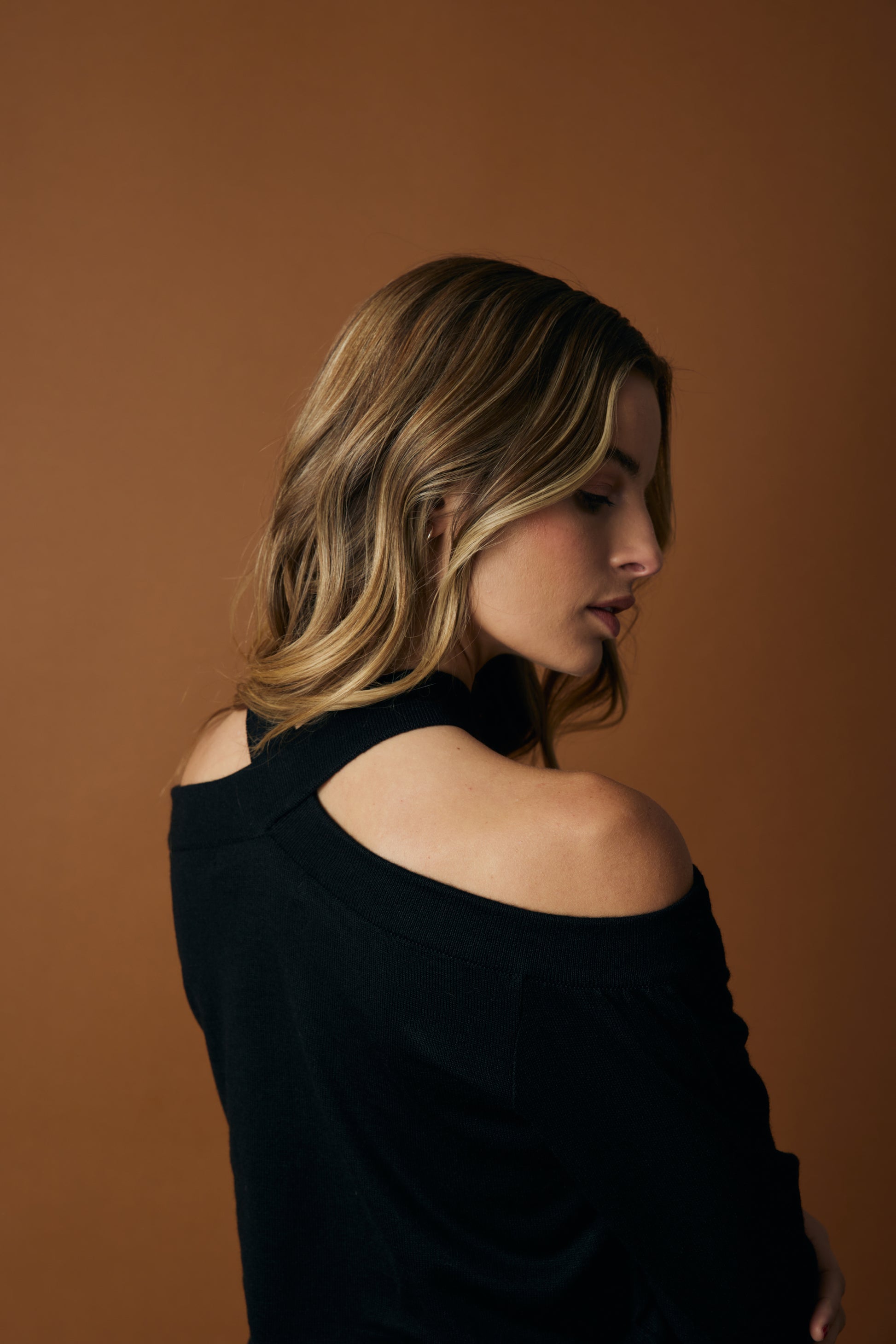 La polera ambar tejida y su cuello bote hombro con cruce escote tiene un look muy moderno e ideal para toda moda.