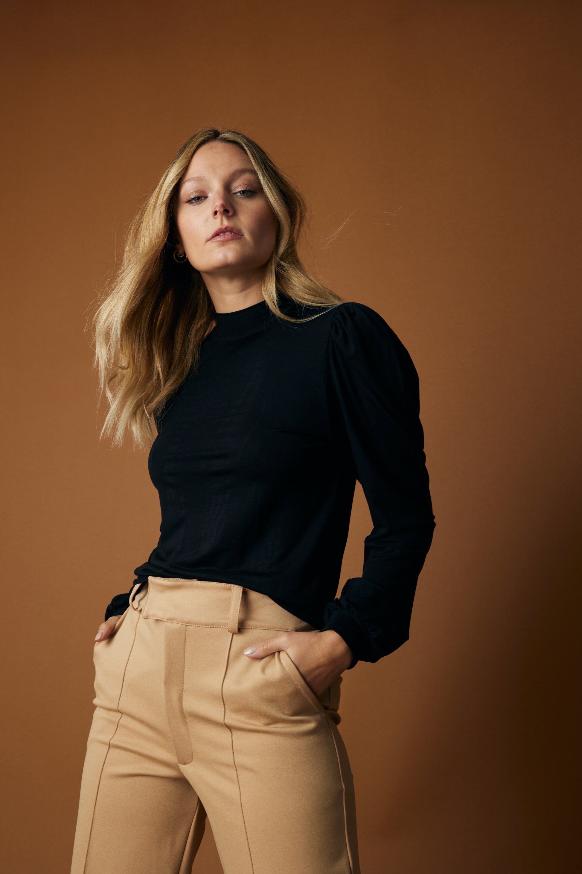 La polera cadiz romantica con sus mangas globo con abertura en espalda ideal para usar combinando chaquetas.