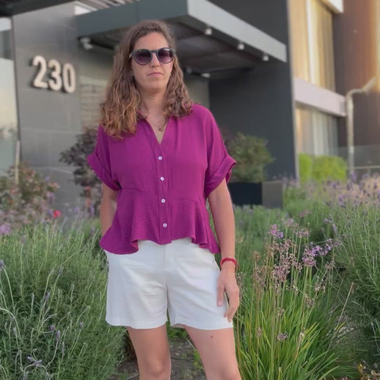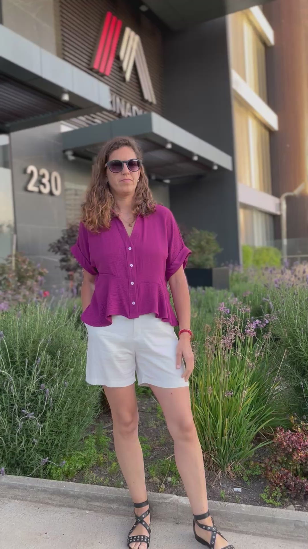 La Blusa Florencia , manga kimono y con asimetría de vuelos en el ruedo , versátil , cómoda y original
